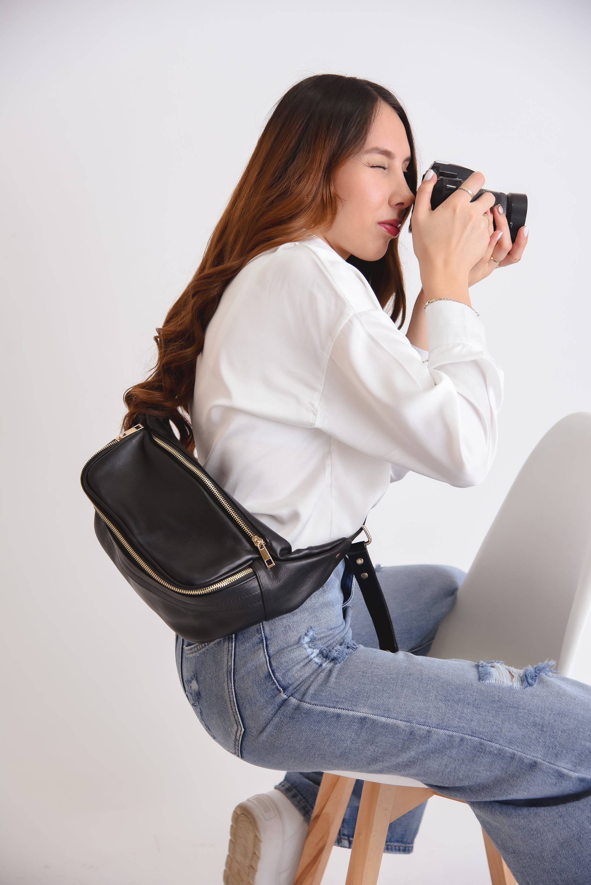 Incluye un divisor y un strap. Manejamos dos colores, en café y negra. Su medida es de 28 de largo por 13 de ancho. Correa ajustable.