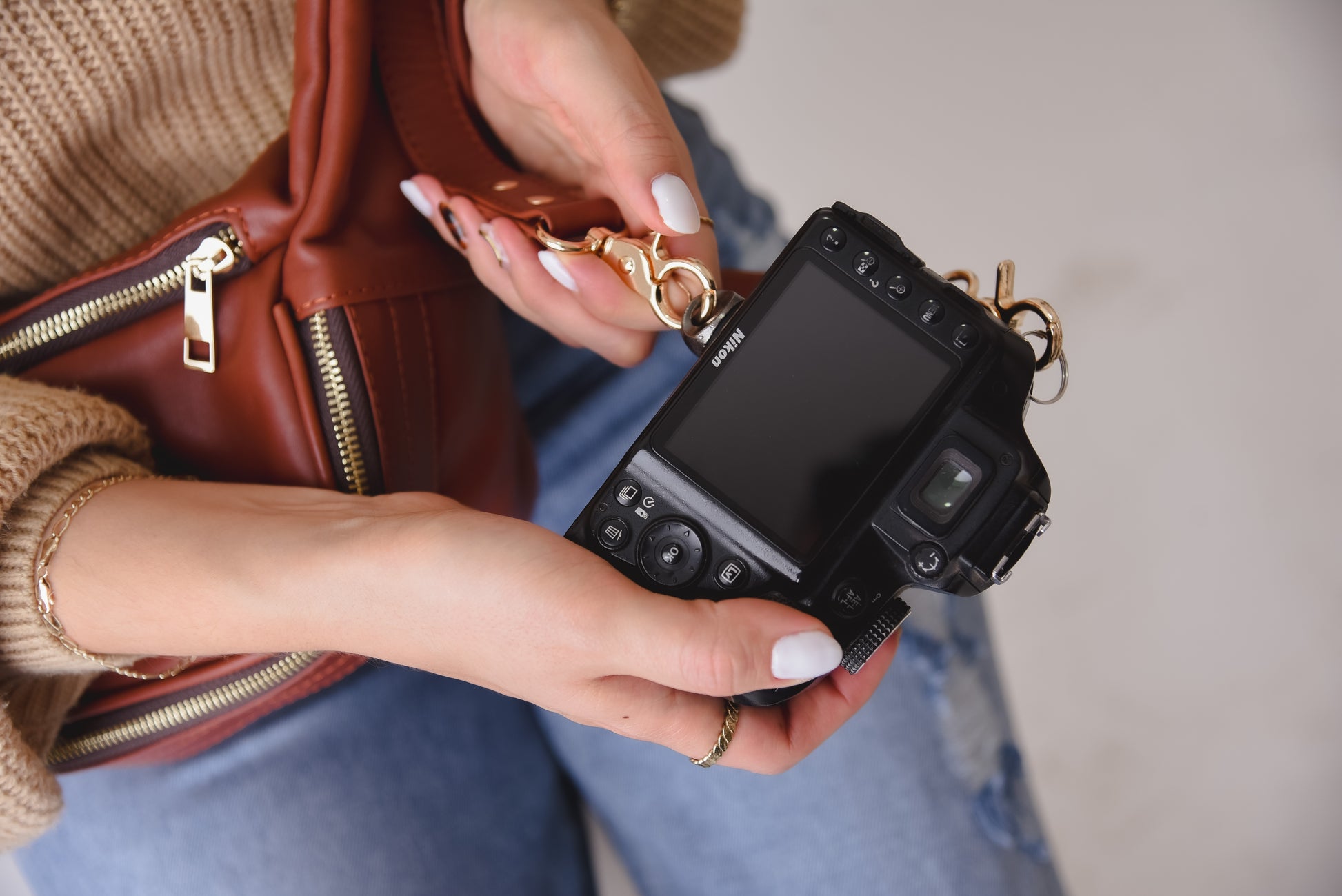 Es de piel, con forro acabado terciopelo para protección del equipo. Herrajes dorados.